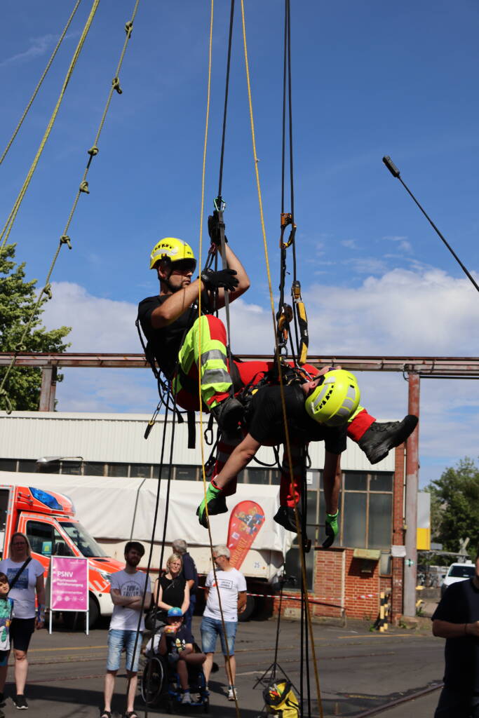 Am Samstag, den 05. Juli 2025 waren wir mit einem großen Mitmach-Stand auf dem Blaulichttag am Technik-Museum Kassel vertreten – auf dem alten Henschel-Gelände in der Wolfhager Straße. Gemeinsam mit vielen anderen Organisationen aus dem Blaulichtbereich präsentierten wir, wie vielseitig, spannend und relevant unsere ehrenamtliche Arbeit in der Höhenrettung ist.